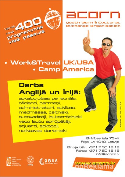 Darba vakances ārzemēs dažādās sfērās atkarībā no angļu valodas zināšanu līmeņa un darba pieredzes.
