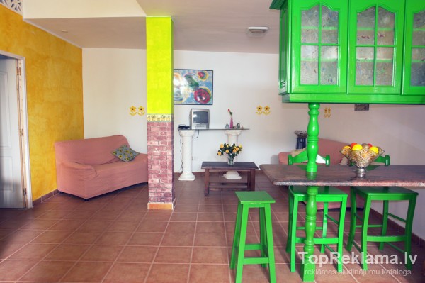| Atpúta Tenerifá, Abades - plasá souterrain dzívoklí- apm.80 m²+20 m² rnsaulaina tarase. Prieks maximums 4 Personám (3 gultas, viens matracis bérnam vai jaunietim). Dzívoklí ir 2 rnguljamistabas, viesistaba apvienota ar virtuvi (atvértais plánojums), rnvannas istaba, noliktava. Véja aizsargáta pludmale atrodas apm.400 m rnattálumá. Cená ieklauta gultas vela, dvieli, komunálie maksájumi, gala rntírísana. Atlauti májdzívnieki - €5 no dzívnieka pa dienu. rnViena nakts €27,- neatkarígi no cilvéku skaita. |