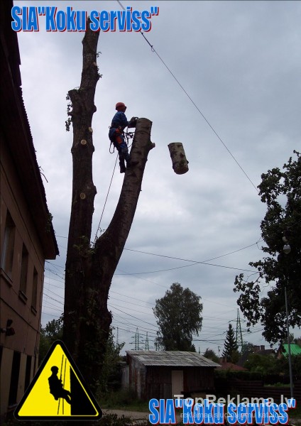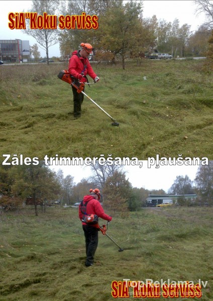 Bīstamo koku zāģēšana, kopšana (operatīvi izbraukumi uz objektiem; zāles pļaušana, trimmerēšana, krūmu, koku izciršana, un citi vienreizējie uzkopšanas darbi); Strādājam galvenokārt Rīgā un Rīgas rajonā, bet iespējama darbu veikšana visā Latvijā (Rīgā, Jūrmalā, Saulkrastos, Jelgava, Ogrē, u.tt