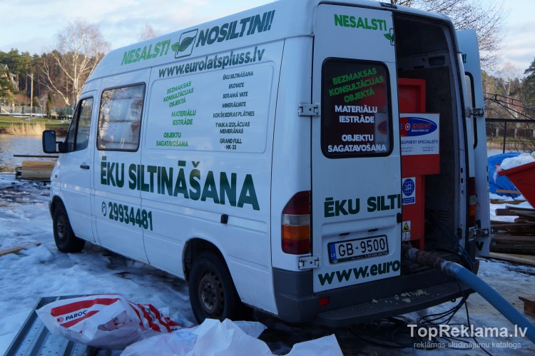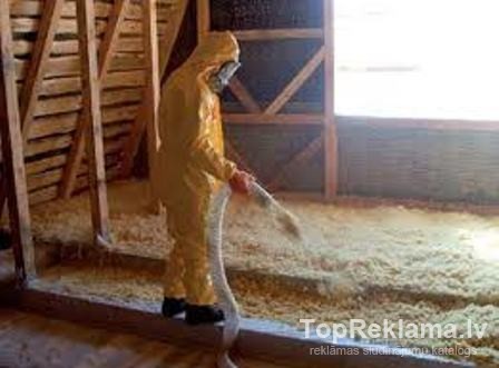 Ēku siltināšana ar ekovati, un beramo akmens vati paroc, stikla vati isover, kā arī ar granulām Hk-35, grand full iestrāde sienās, bēniņos, grīdās, jumtā, starpstāvu segumos.