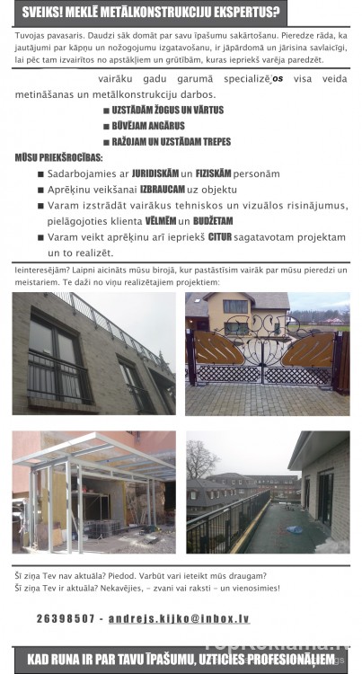 Vairāku gadu garuma speciālizejos visa veida metināšanas un metalkonstrukcijas darbos,