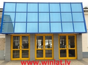Rūdītā stikla izstrādājumi, Stikla durvis, Stikla nojumes,