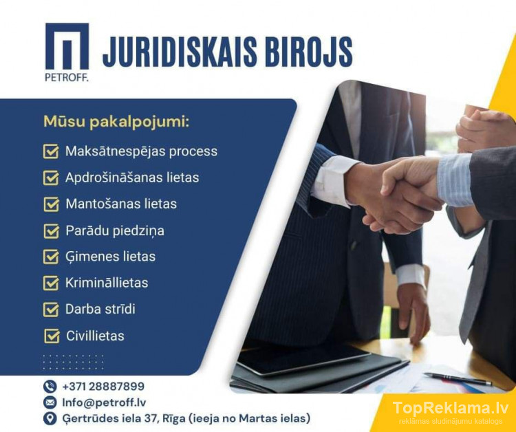 Juridiskais birojs PETROFF sniegs Jums bezmaksas konsultāciju jebkurā jautājumā:
