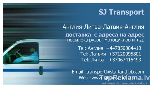 SJ Transport доставка с дреса на адрес Латвия-Англия-Шотландия-Ла вия