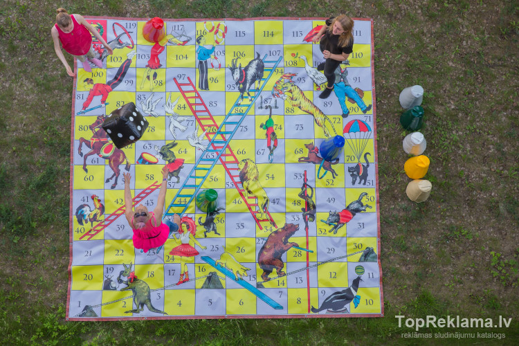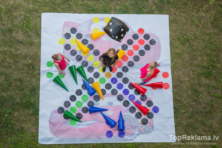Kurš gan neatceras bērnības spēli "Cirks" vai "Riču raču" , "Dambreti" , mūsdienu "Twister" noteikti zina jau visi ? Tās var spēlēt stundām ilgi. Jā, tagad tās pieejamas arī lielformāta izmērā, lai interesanti spēlēt gan lieliem, gan arī maziem. Spēle sastāv no spēles paklāja un kauliņiem. Spēles izmērs 4x4m, kauliņu izmērs 50 cm. Spēlē izgatavota no izturīga PVC materiāla, kurš kalpos ilgi un ir viegli kopjama, mīksti spēles kauliņi, netraumēs spēlētājus.