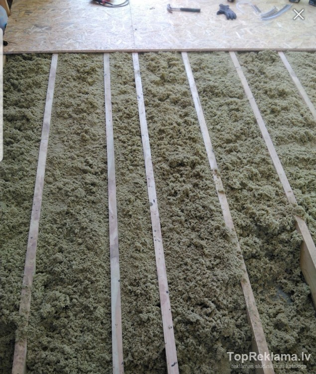 Var bērt grīdās, pažobelēs un bēniņos. Viegli iestrādājama, izber no maisa un izlīdzina.