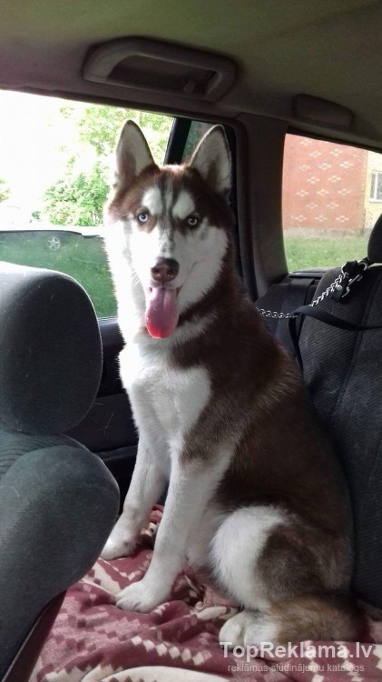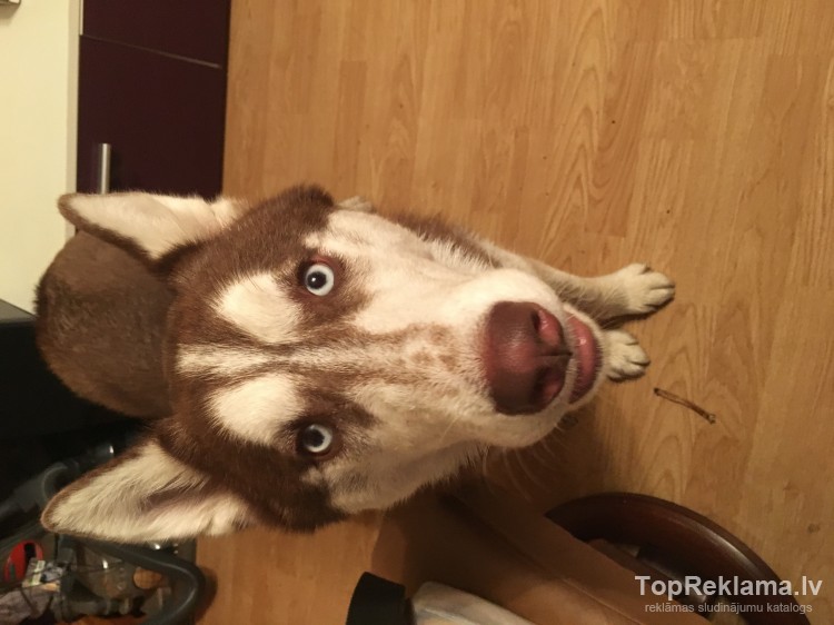 Skaists brūnbalts Sibīrijas haski vārdā Arčibalts. Dzimis 01.09.2016. Meklē jaunus saimniekus.