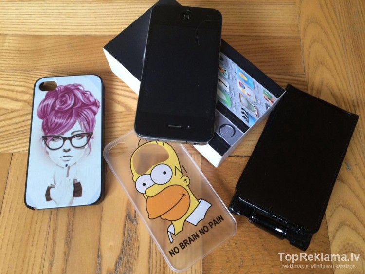 Pārdodu iPhone 4s. Pirkts LMT. Pilna komplektācija. Papildus vēl dodu 3 ''cases'' (skat. foto). Uz telefona jau ir aizsargplēve. Telefons nesen krita, tādēļ uz ekrāna ir arī mazas skrambas, bet tas nekam netraucē. Telefons ļoti labi strādā un neaizķeras. Par cenu varam vienoties.