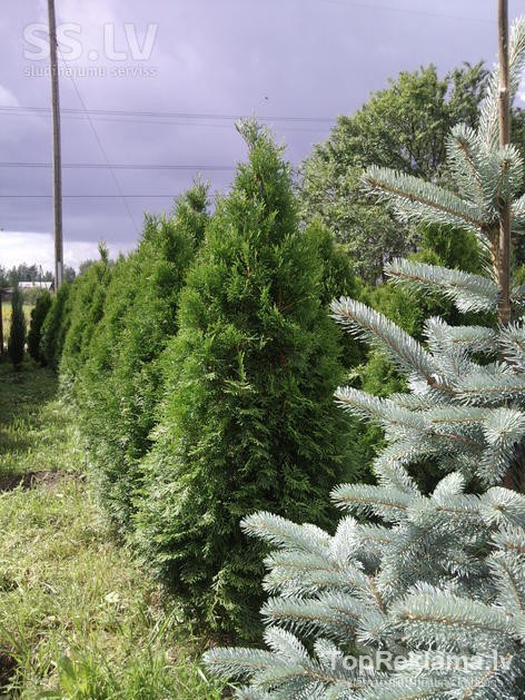 Продаём туи skyrocket 130-140 см, blue arrow 160-180 см, brabant от 100-160 см. , smaragd 100-140 см. , yellow ribbon100-120 см, columna100-130 см, hubner 130 см. также в ассортименте имеется ёлка. Цены от 4. 90ls. Также возможна посадка.
