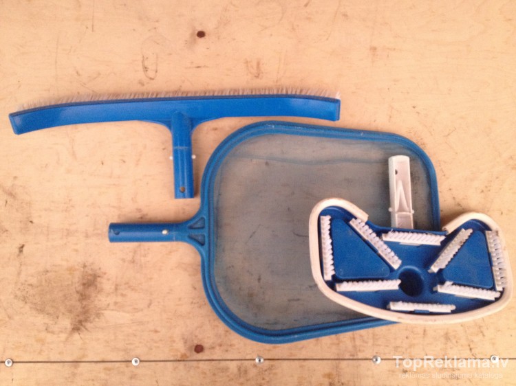 Baseina tīrīšanai kāts ar birsti pie kuras piestiprina Sunflex baseina tīrīšanas vakuuma cauruli, baseina netīrumu sasūkšanai.