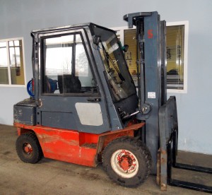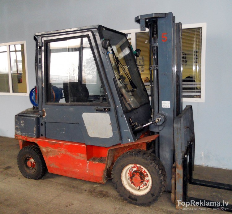 Gāzes iekrāvējs NISSAN UJ02A25U, celtspēja 2,5 tonnas, pacelšanas augstums 4,30 metri, masts 3F430 (trīspakāpju masts ar brīvo gājenu), sānu nobīdes mehānisms Side Shift, ar kabīni.