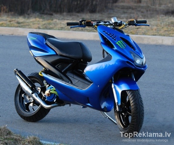 Pārdodu motorolleri. Motorollers ļoti labā stāvoklī. Ir tūnings gan vizuāli, gan motorā. Lieta tikai labākā motul eļļa. Pilnigi svaigs 70cm3 cilindrs, tiktikko iebraukts. Ļoti labs transporta lidzeklis pa pilsētu. Gan arii citur. Šis motorollers ir ieguvis 1. Vietu, scooter customshow latvia 2011.