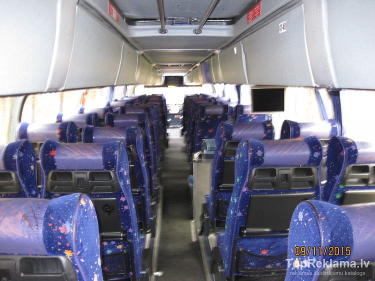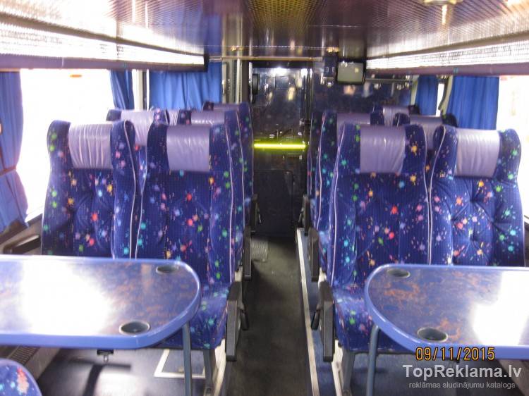 Aprīkojums: CD atskaņotājs, DVD, videosistēma, mikrofons, WC, AC, pirmajā stāvā divi galdiņi. |