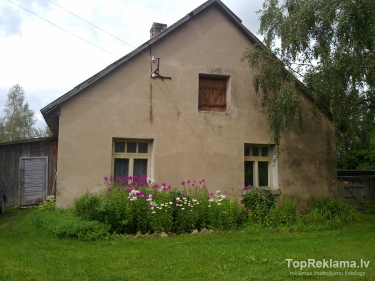 | Atrodas skaistā vietā,blakus labs zemesceļš,mājai 3 istabas un virtuve,ir kūts,divi dīķi,garāža,šķūņi,2.5 ha. |