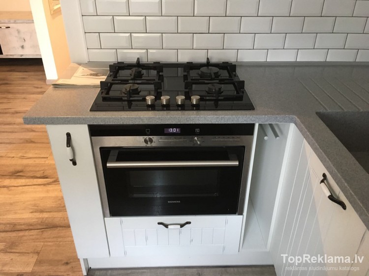 Virtuve - iebūvētā tehnika Siemens / AEG - veļas mašīna ar žāvētāju, ledusskapis, gāzes plīts, cepeškrāsns ar mikroviļņu krāsni, tvaika nosūcējs, masīvkoka bāra lete ar 4 bāra krēsliem.