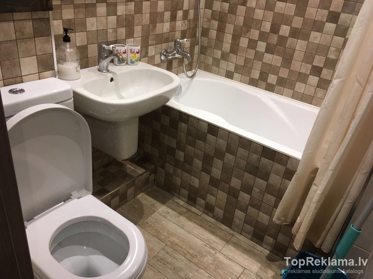 Vannas istaba - jauna santehnika, itāļu jaucējkrāni, jauni ūdens skaitītāji, grīdas apsilde