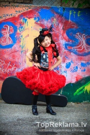 kupli svārki ir ar elastīgu jostu, kas stiepjas uz aptuveni pusotru reizi. Skaista kleita- komplektā ( kupli svārki + top ar rozītem )