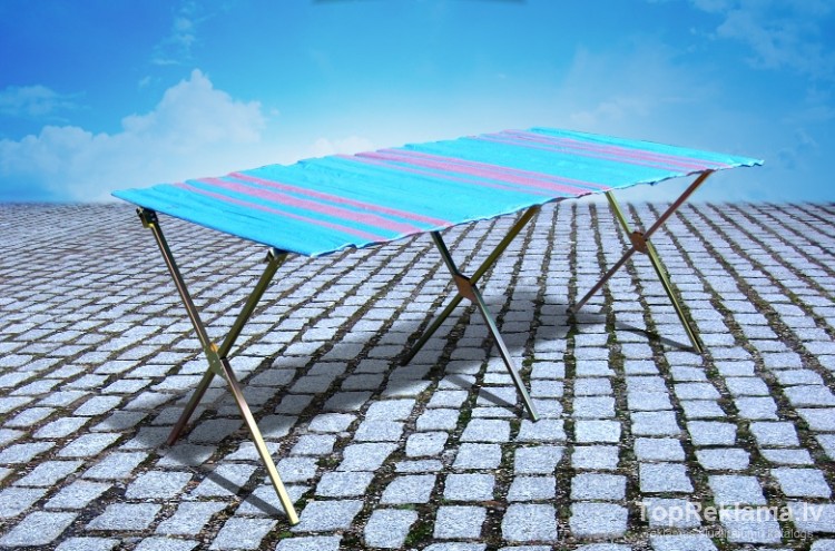 Materiāls: rāmis - tērauds, virsma - ūdensnecaurlaidīgs poliesters.