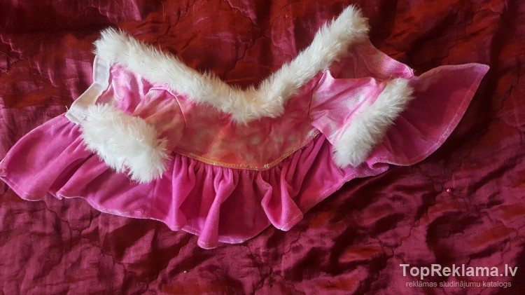 7.Rozā kleita ar spīdumiem un melnu pūku izmērs XS