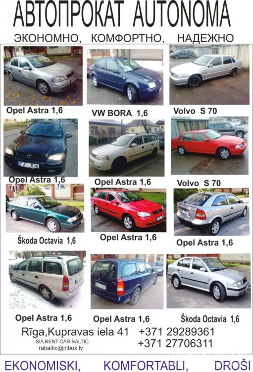 | Autonoma.Ekonomisks auto (7, 6 lit. / 100 km. ), Ietilpīgs, ērts auto labā stāvoklī. Caurlaide uz Jūrmalu. Piegāde klientam. |