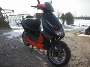 Pārdodu/Mainu Motorolleri Aprilia SR125, 2004.gads. Ar Dokumentiem (Tehniskā pase). Nevar pielaist, motoram zūd kompresija. Viss pārējais normālā stāvoklī. Piekrītu mainai pret portatīvo datoru. Atrodas Saldū
