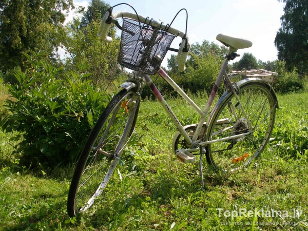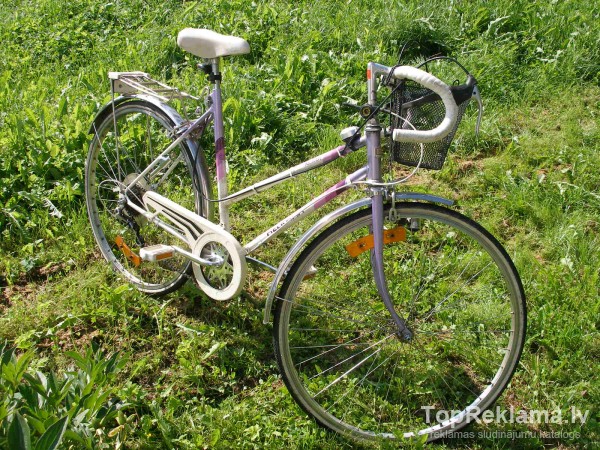| Ideālā stāvoklī sieviešu sporta ritenis!Liektie ragi labi piemēroti pilsētas braukšanai.6 ātrumi,ķēdes aizsargs,grozs, pakaļējais ritenis aizslēdzams. |
