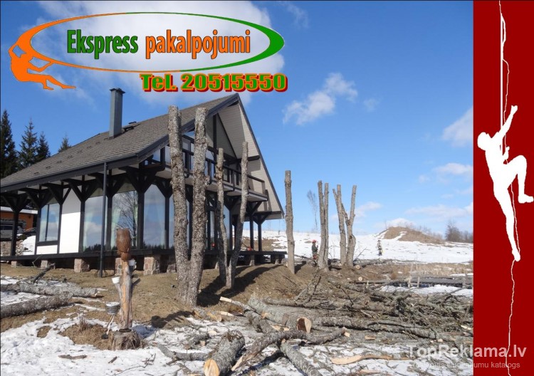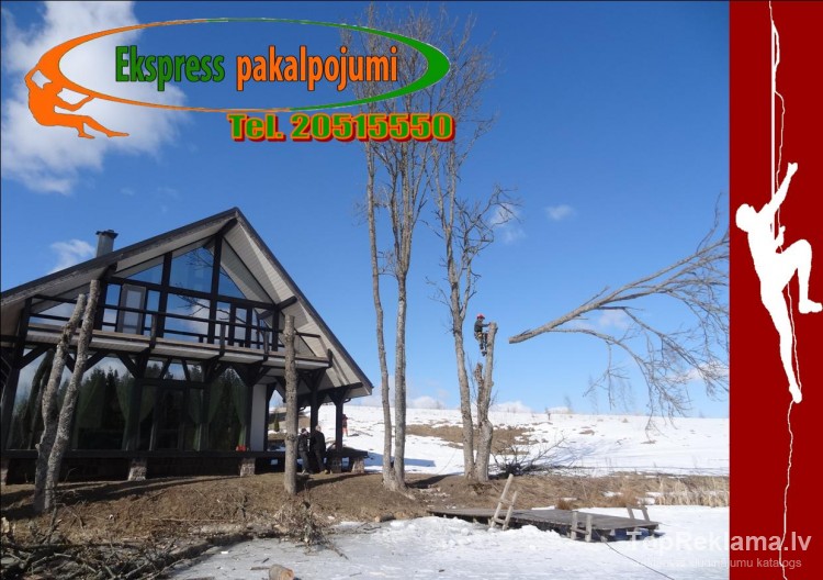 kā arī visa veida zāģēšanas darbi grūti pieejamās vietās. Izzāģējam apbūves teritorijas, kokus, pamežus, mežus, aizlaistus dārzus u. t. t, sniedzam arī koksnes izvešanu, celmu izrakšanu, frēzēšanu, kā arī varam veikt trimmera pakalpojumus