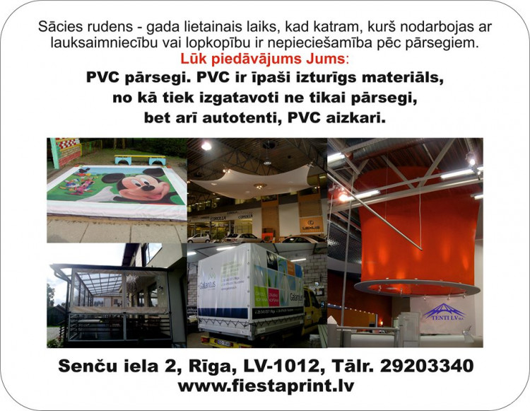 Piedāvājam izgatavot PVC aizskarus, pārsegus, nojumes u.c lietas.Izmantojam tikai kvalitatīvus, izturīgus materiālus