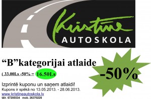1) Izprintē kuponu un saņem atlaidi "B" kategorijai.