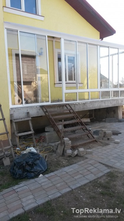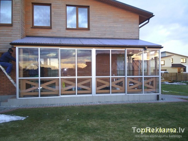 Terasu un verandas iestiklošana ar alumīnija konstrukcijām.