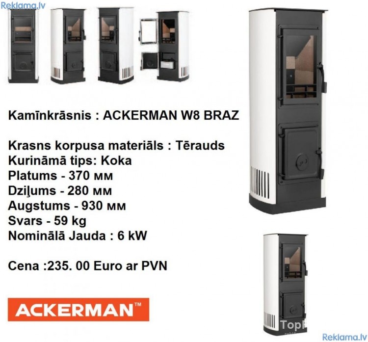 Каминная печь : Ekonomik LM Материал корпуса печи: сталь Вид подключения к дымоходу : верхнее Вид топлива : дрова Ширина - 360 мм Глубина - 330 мм Высота - 930 мм Вес - 36 кг Номинальная мощность : 5-7 кВт Цена : 135.00 Euro ar PVN Каминная печь : Ekonomik Материал корпуса печи: сталь Вид подключения к дымоходу : заднее Вид топлива : дрова Ширина - 330 мм Глубина - 460 мм Высота - 900 мм Вес - 39 кг Номинальная мощность : 5-7 кВт Цена : 158.00 Euro ar PVN Каминная печь : Ekonomik LUX LM Материал корпуса печи: сталь Вид подключения к дымоходу : верхнее Вид топлива : дрова Ширина - 330 мм Глубина - 360 мм Высота - 930 мм Вес - 37 кг Номинальная мощность : 5-7 кВт Цена :154.00 Euro ar PVN Каминная печь : Ekonomik LUX