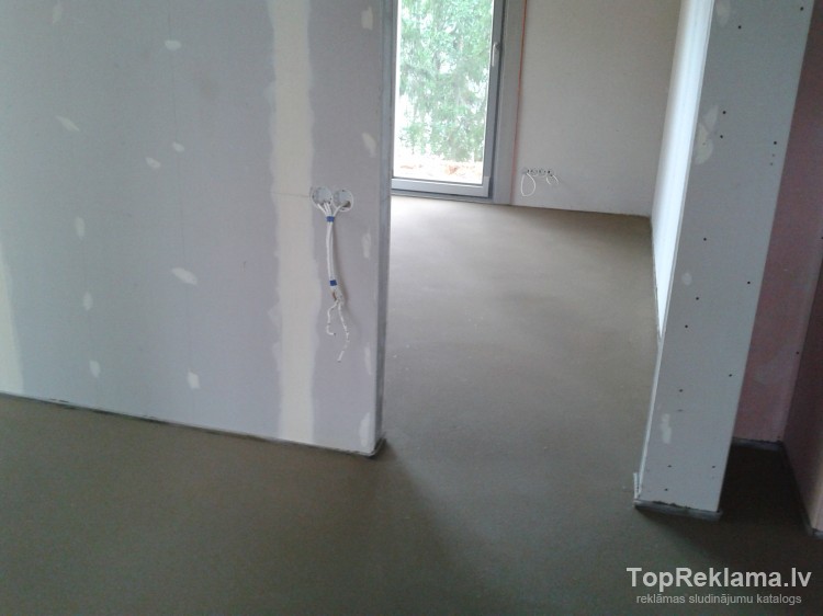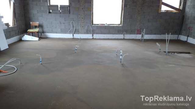 Betona klonu grīdu Estrich betonēšana. Pussausais estrich maisījums, slīpēti gluda, līdzena virsma bez papildus apstrādes. Darbus veicam visā Latvijā ar kvalitāti un garantiju. Cenas sākot no 3, 50 eiro ar jūsu materiālu un no 6 eiro ar mūsu materiālu, atkarigs no atrašanās vietas un betona slāņa.