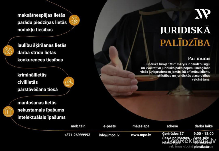Juridiskais birojs MP sniegs Jums bezmaksas konsultāciju jebkurā jautājumā: