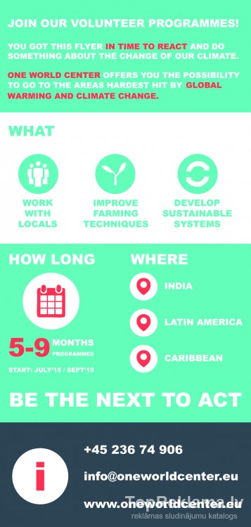 Lai saņemtu plašāku informāciju, apmeklē OWC mājaslapu un aizpildi pieteikuma anketu: http://www.oneworldcenter.eu/apply-now , vai raksti mums
