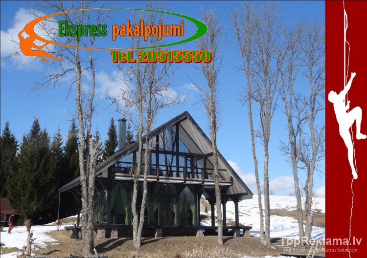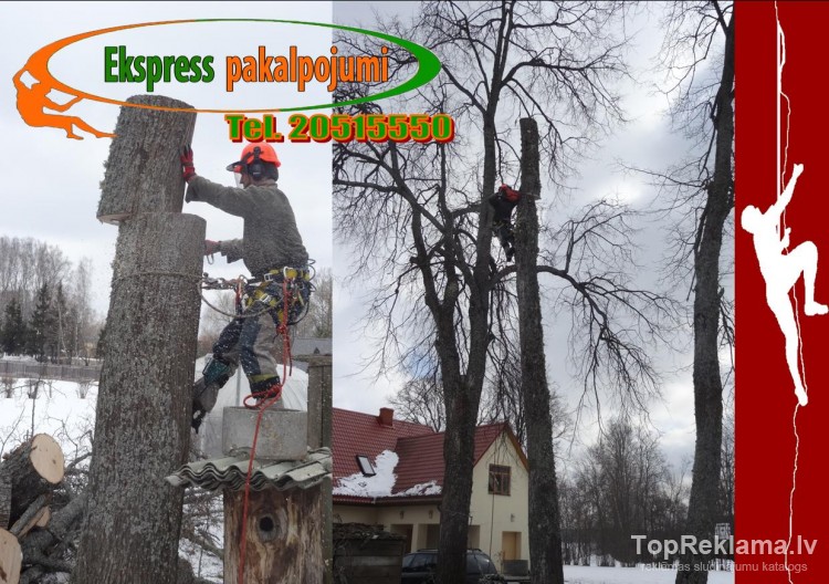 kā arī visa veida zāģēšanas darbi grūti pieejamās vietās. Izzāģējam apbūves teritorijas, kokus, pamežus, mežus, aizlaistus dārzus u. t. t, sniedzam arī koksnes izvešanu, celmu izrakšanu, frēzēšanu, kā arī varam veikt trimmera pakalpojumus
