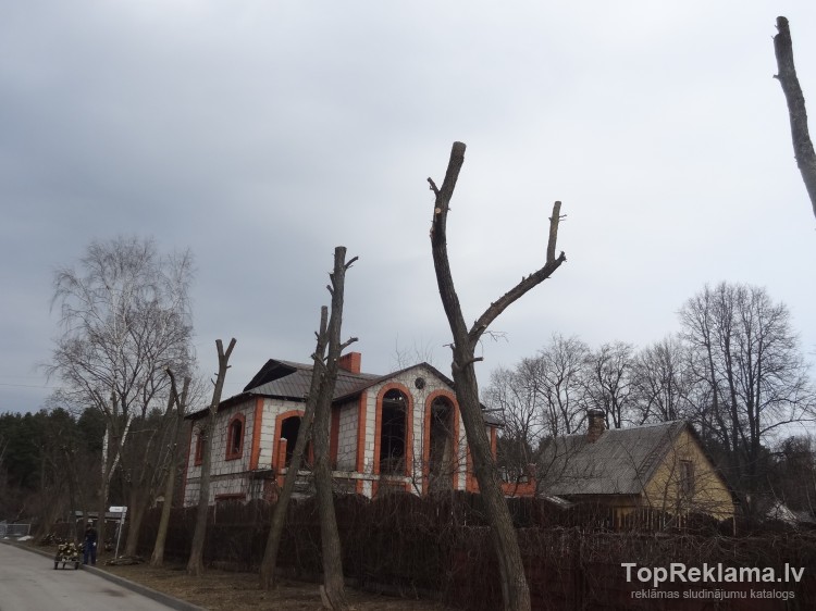 Likvidē vēja un citu faktoru nodarītos postījumus kokiem. Jumtu tīrīšana, teritoriju uzkopšana, zāles pļaušana un rūpnieciskais alpīnisms.