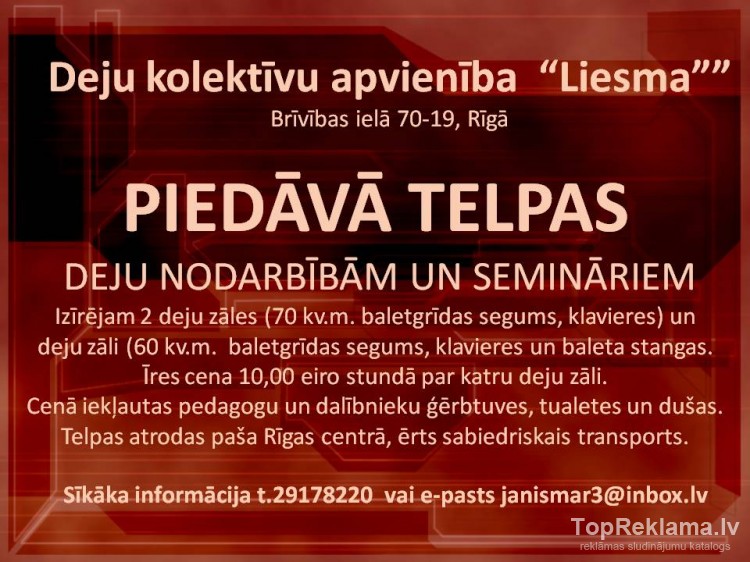 PIEDĀVĀ TELPAS DEJU NODARBĪBĀM UN SEMINĀRIEM EUR 10,-