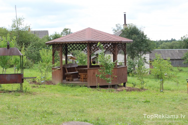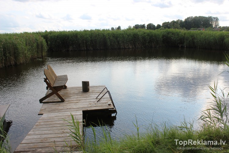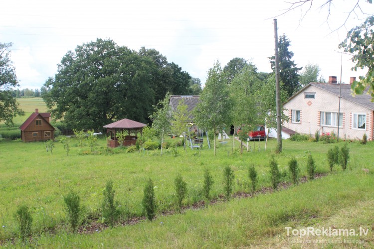 Kā arī ir garāža, pagrabs, dīķis, lapene, augļu koki un krūmi. Netālu no mājas ir veikals un divi ezeri.