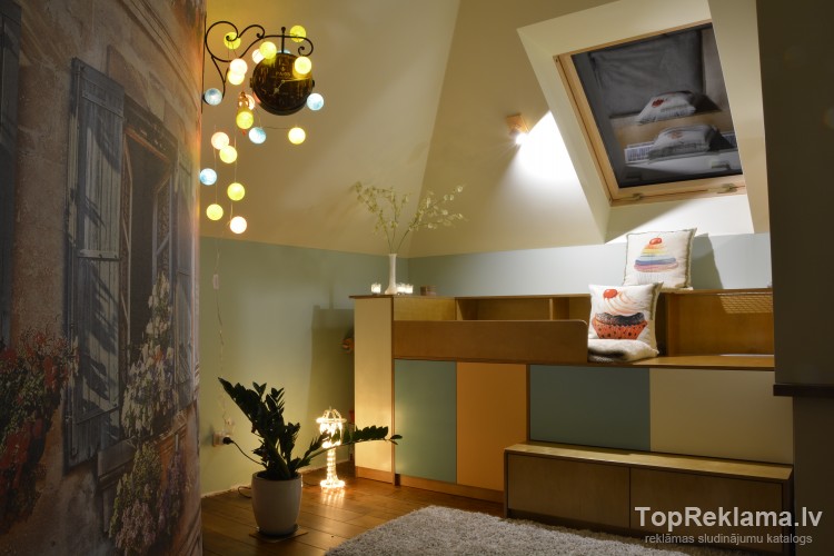 - telpu apdarē izmantoti augstvērtīgi apdares materiāli (akmens masas flīzes, koka grīdas, eko krāsas, koka pakešu logi u. c. )