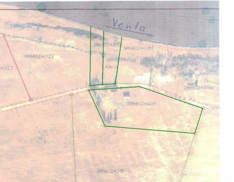 Ar kadastra numuru: 9866 024 0179 (0,72 ha) un 9866 024 0177 (0,69 ha) robežojas ar Ventas upi,