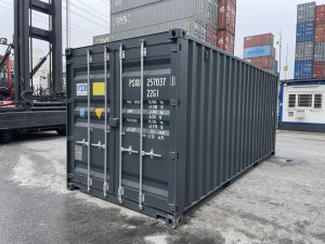20 pēdu DV uzglabāšanas konteiners / jūras konteiners / materiālu konteiners vienā virzienā, RAL 7016 antracīta pelēks, būvēts 2024. gadā.
