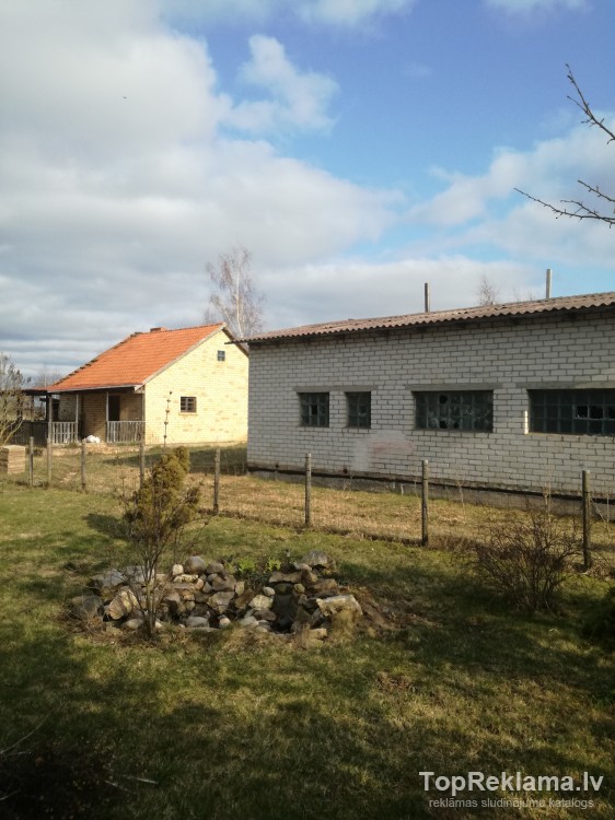 Pārdodas zeme ar nepabeigtu būvniecību. Mājas pamati 100 kvm. Garaža, pagrabs jau ir zem jumta. Blakus ir saimniecības ēka- 50 kvm, kuru var izmantot pagaidu dzīvošanai. Saimniecības ēkai pievads no akas (akā tīrs dzerams ūdens bez dzelzs piegaršas).