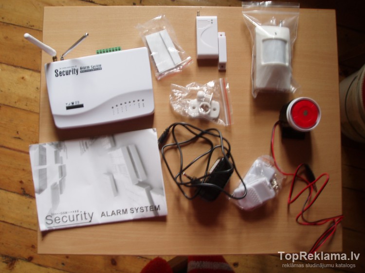 Pārdod nelietotu GSM Security Alarm bezvadu signalizāciju ar simkarti un simkartes kredītu. Darbojas no strāvas avota vai/un ar baterijām. Trauksmes gadījumā sirēna spalgi taurē (ja pieslēgta) un vadības bloka simkarte zvana vai sūta īszinu uz jūsu piesaistītajiem telefona numuriem. Var pieslēgt, atslēgt vai mainīt uzstādījumus ar pulti vai ar īsziņu. Vienkārši uzstādīt - ir instrukcija un internetā daudz video pamācību. Pašiem izrādījās nevajadzīga, pirms paspējām uzstādīt.
