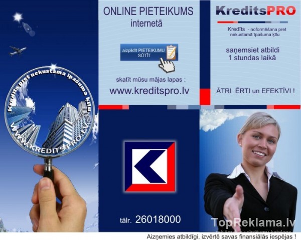 - Sūtiet Online Pieteikumu. Sk. mūsu web-lapā/ Kreditspro - Atbilde 1 stundas laikā.