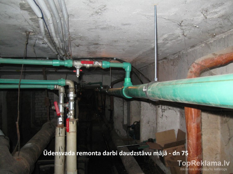 Ūdensvada cauruļu ievilkšana un pieslēgšana.