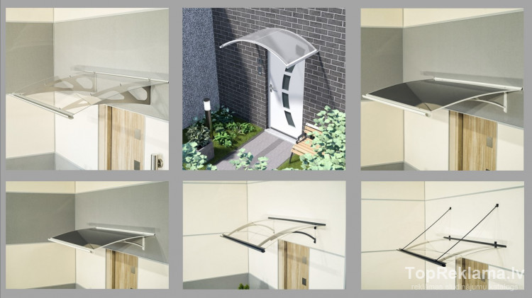 Piedāvājam vieglus jumtiņus virs durvīm. Liela izvēle un ātra piegādes.
