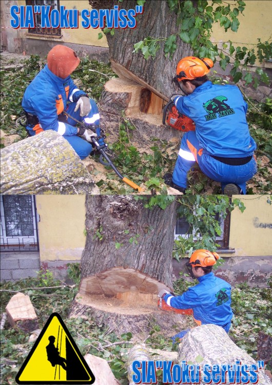 Bīstamo koku zāģēšana Darbus veicam ar autopacēlāju, alpīnismu,