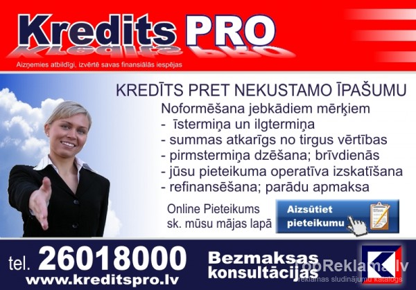 - Sūtiet Online Pieteikumu. Sk. mūsu web-lapā/ Kreditspro - Atbilde 1 stundas laikā.