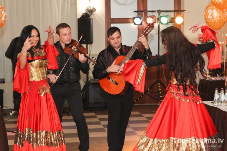 IZKLAIDE, kurā ar prieku piedalīsies Jūsu svētku viesi! Kopā dziedāsim un dejosim čigānu tautas ritmiskās melodijas. Joki, spēles un īpaši apsveikumi jubilāriem! Piebursim veiksmi un , ja vēlēsieties, mazliet maģijas, tad atvedīsim līdzi arī īstu čigānu zīlnieci!