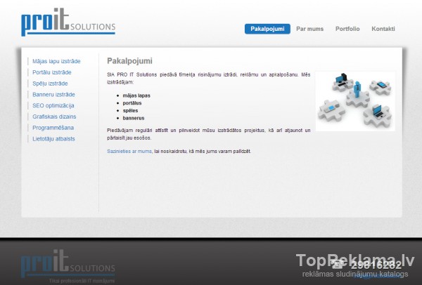 SIA PRO IT Solutions piedāvā tīmekļa risinājumu iztrādi, reklāmu un apkalpošanu. Mēs izstrādājam: mājas lapas, portālus, spēles, bannerus.